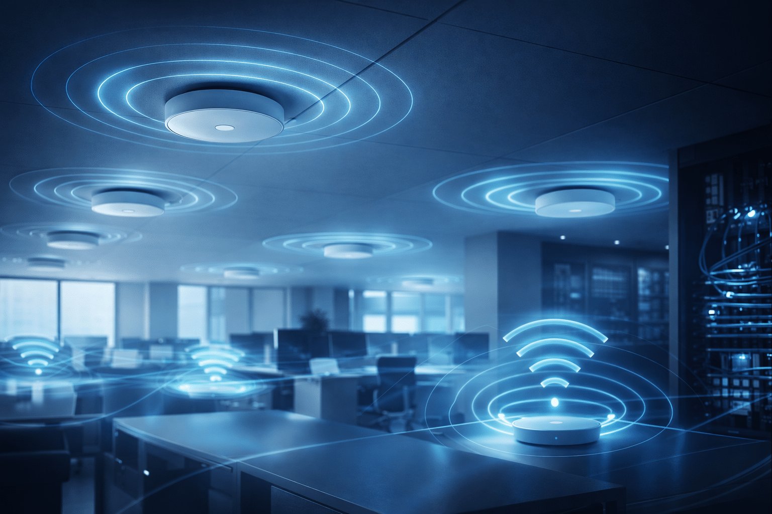 Az access point sűrűség meghatározása ezért kapacitásalapon történik, nem kizárólag lefedettség alapján. Nagy felhasználósűrűségű területeken (pl. tárgyalók, open office, konferenciatermek) több AP szükséges kisebb teljesítménnyel, hogy a terhelés egyenletesen oszoljon el. Ez csökkenti a torlódást és javítja a hálózat stabilitását.